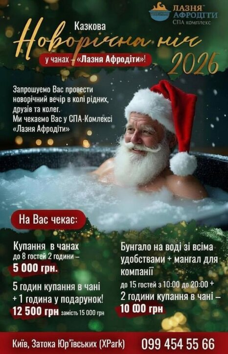 Баня Афродиты находится в Парке Муромец (парк Дружбы Народов) (XPark) в 8 км от Крещатика, ориентиры - рядом с Московским мостом, ближайшее метро Почайна (Петровка).